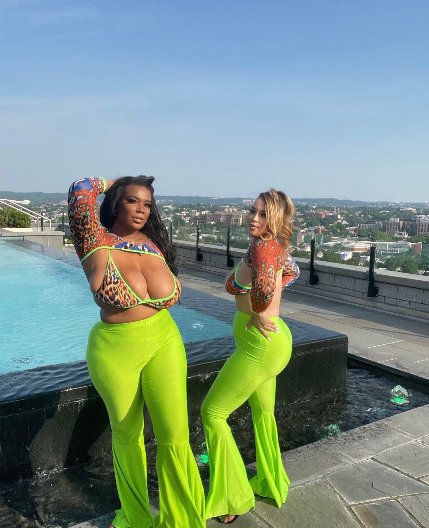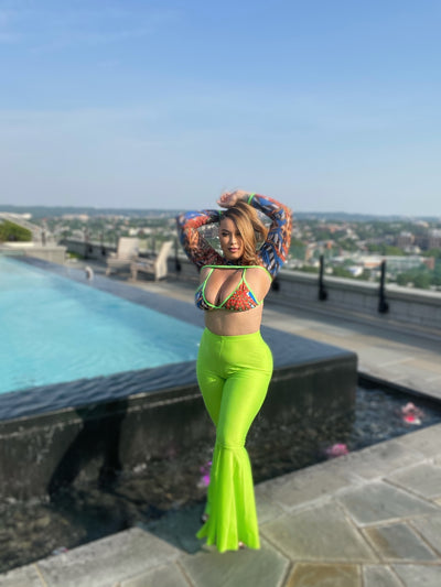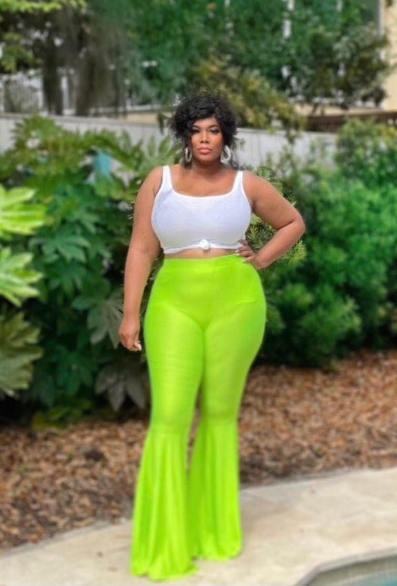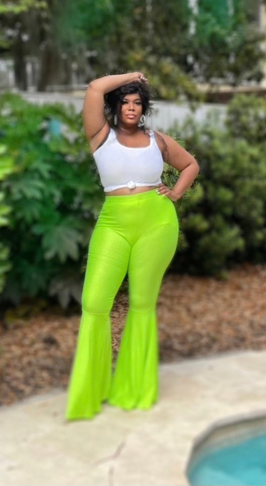 These stretch pants are perfect to even out and flatter the curvy shape.wearing bell pants is  Slimming to the figure. Lots of stretch