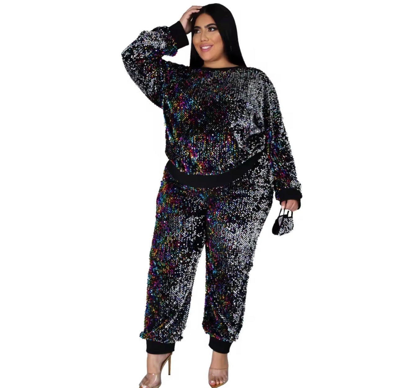 ✨ Plus Size Women’s Set: This bling plus size two piece pants set is perfect
